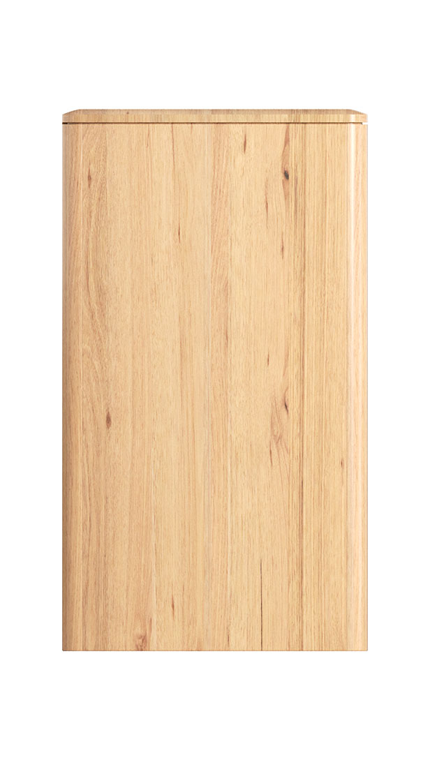 • Features: Messmate timber, natural finish, solid timber top and vertical capping, adjustable shelves, soft-closing hinges, edge pull handles